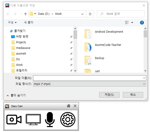 녹화가 끝나면 녹화 파일을 저장할 곳을 물어봅니다.